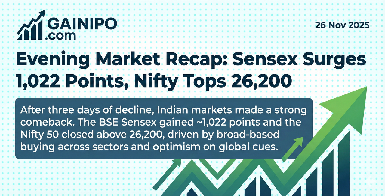 Evening Market Recap: Sensex Surges 1,022 Points, Nifty Tops 26,200